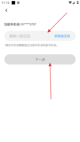 4、在修改手機(jī)號頁面,點擊獲取驗證碼,點擊下一步。