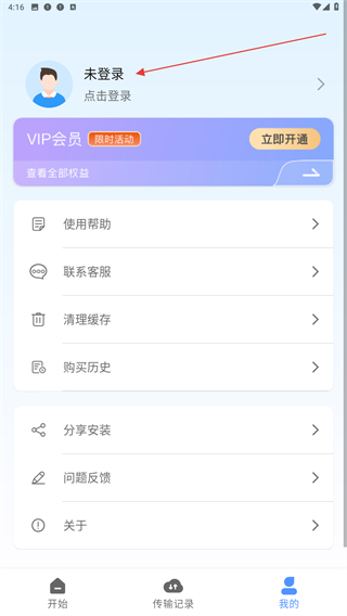 2、在我的頁面內(nèi),點(diǎn)擊未登錄的區(qū)域。