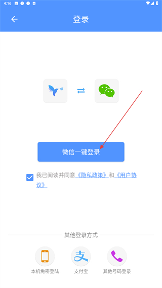 3、進(jìn)入登錄的頁面,點(diǎn)擊微信一鍵登錄的按鈕即可。