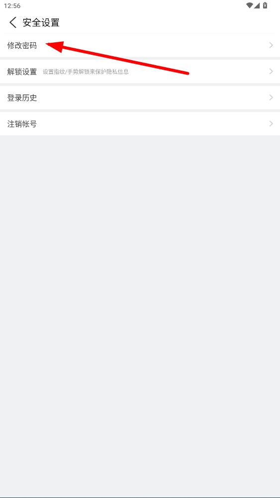 3、在安全設(shè)置頁面里,點擊修改密碼選項,進入修改密碼頁面。