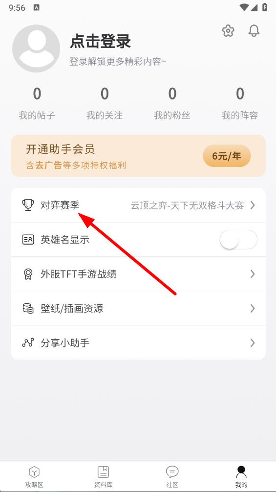 1、打開云頂攻略助手app,在首頁點擊右下角的我的,進入個人頁面。