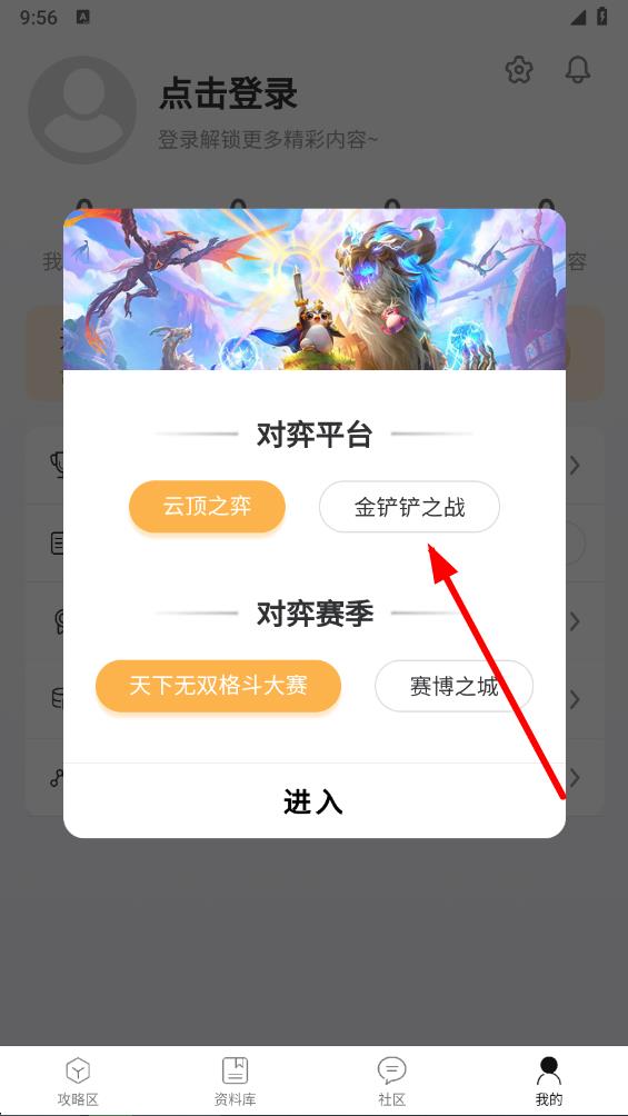 3、在對弈平臺選擇區(qū)域,點擊金鏟鏟之戰(zhàn)的選項。