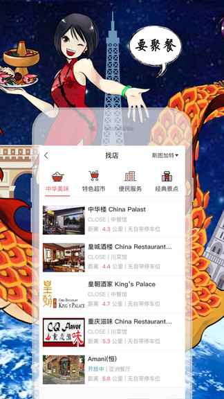 5、探身邊吃喝玩樂:全面的德國景點(diǎn)、餐飲、超市、商場信息,包括營業(yè)時間、具體地址、交通路路線,讓您用更短的時間找到想去的地方。來撩城,一網(wǎng)打盡生活所需。