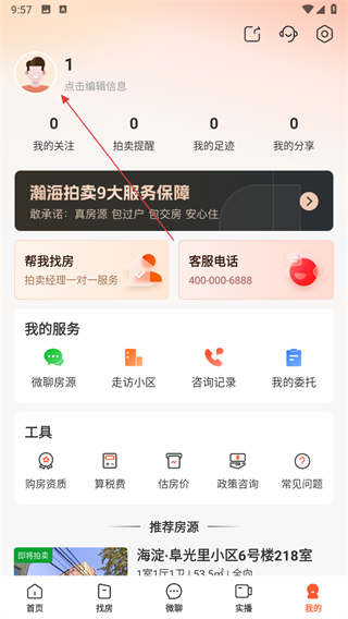 1、打開瀚海拍賣APP,點擊底部導航欄我的,進入個人頁面。