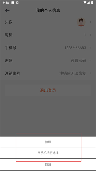 4、在彈出的窗口中,選擇拍照或從手機相冊選擇,挑選合適的圖片,即可完成頭像的更改。