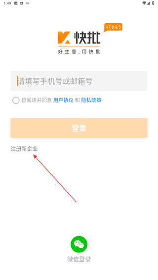 2、進入到登錄的頁面內(nèi),點擊注冊新企業(yè)的按鈕。