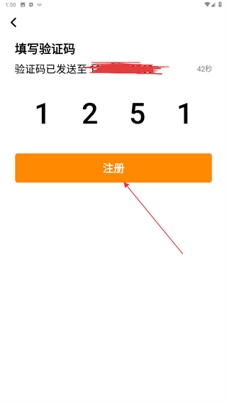 4、將收到的驗證碼輸入進去后,再點擊注冊的按鈕即可完成注冊。