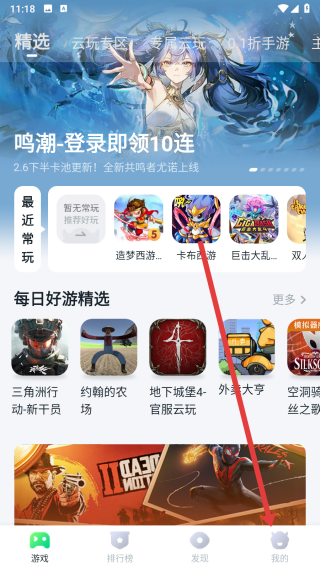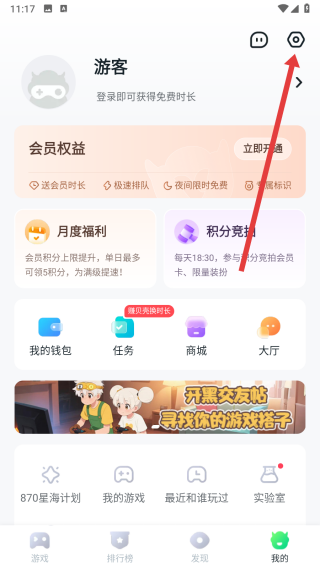 1、可以在870游戲app首頁(yè)中,點(diǎn)擊下方我的按鈕,進(jìn)入我的頁(yè)面。