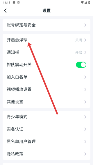 3、可以在設(shè)置頁(yè)面中,點(diǎn)擊開(kāi)啟懸浮球選項(xiàng),進(jìn)入開(kāi)啟操作。