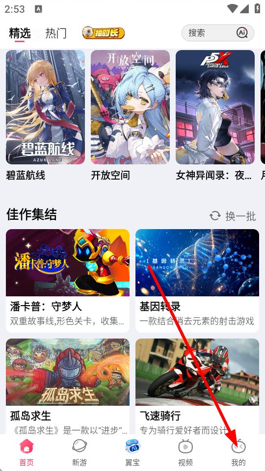 1、打開天翼云游戲應(yīng)用,點擊底部導(dǎo)航欄中的我的選項。