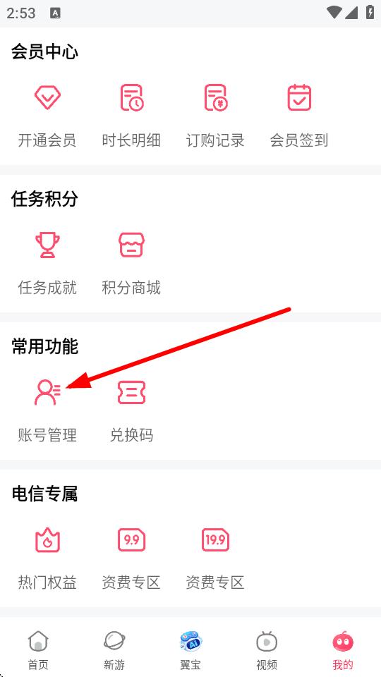 2、在我的頁面里,找到常用功能板塊,點擊賬號管理。