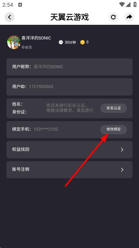 3、進(jìn)入賬號管理頁面后,在綁定手機(jī)信息欄右側(cè),點擊修改綁定按鈕。