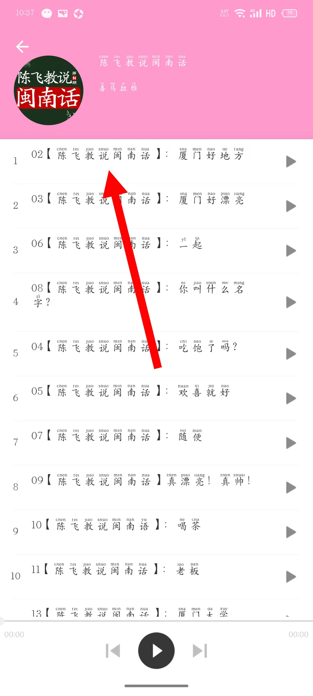 3、在閩方言內(nèi)容頁面,選擇如陳飛教說閩南話這類課程,點擊進入課程詳情頁。