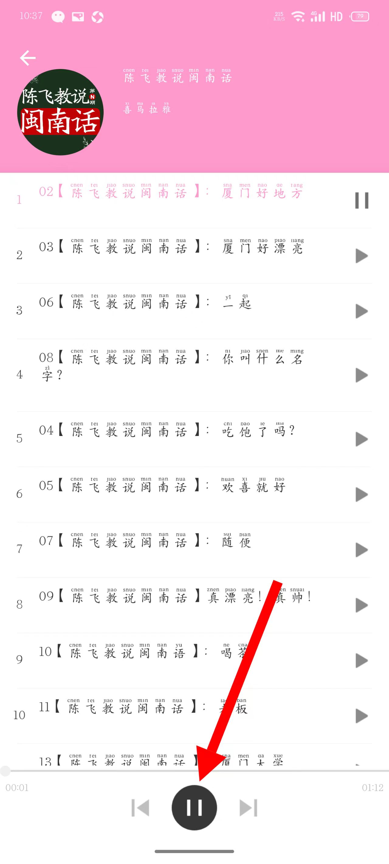 5、即可播放對應(yīng)的方言內(nèi)容,若需暫停,點擊頁面底部的暫停按鈕即可。