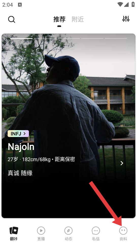 1、打開(kāi)翻咔APP,點(diǎn)擊底部導(dǎo)航欄最右側(cè)的資料,進(jìn)入個(gè)人資料頁(yè)面。