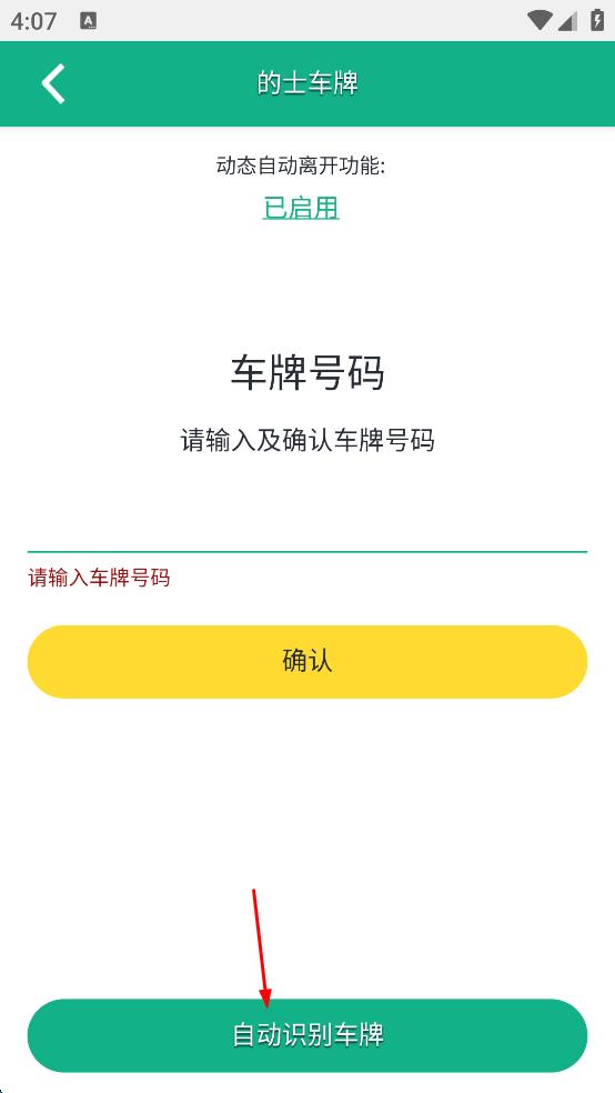 3、在的士車牌頁面,可選擇輸入車牌號(hào)碼或點(diǎn)擊“自動(dòng)識(shí)別車牌”,若選擇自動(dòng)識(shí)別,進(jìn)入對(duì)準(zhǔn)車牌頁面。