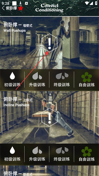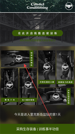 1、打開(kāi)完美囚徒健身APP,在首頁(yè)選擇想要進(jìn)行的訓(xùn)練項(xiàng)目。