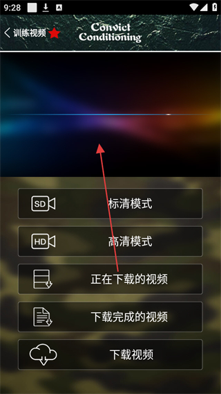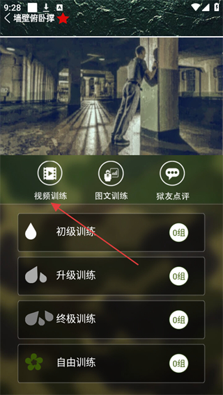 3、在訓(xùn)練動(dòng)作頁(yè)面,點(diǎn)擊視頻訓(xùn)練選項(xiàng)。