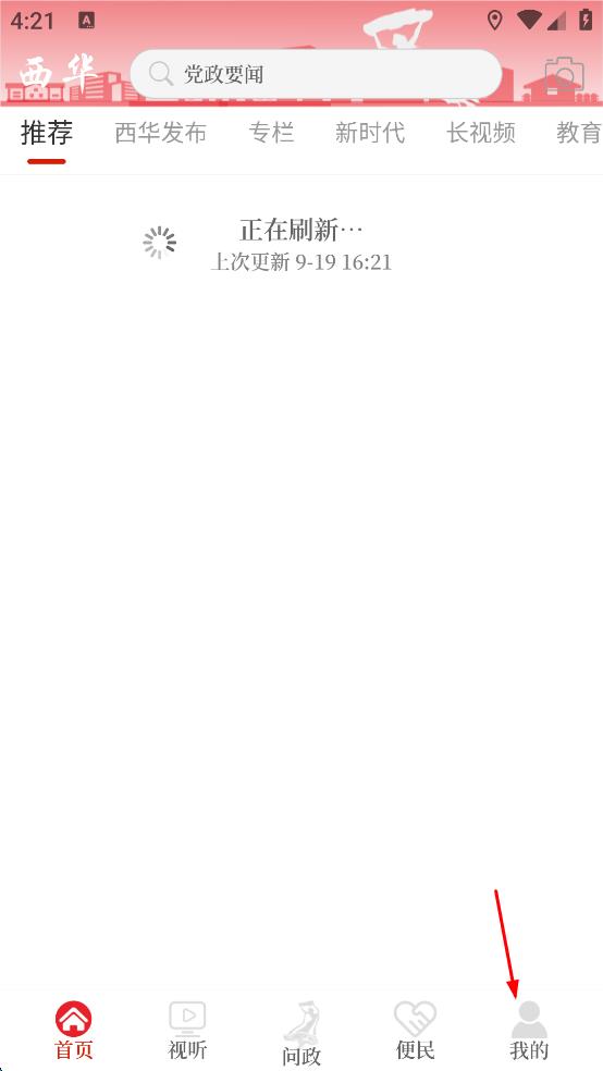 1、打開西華軟件,進入首頁后,點擊頁面右下角“我的”選項,進入個人中心頁面。