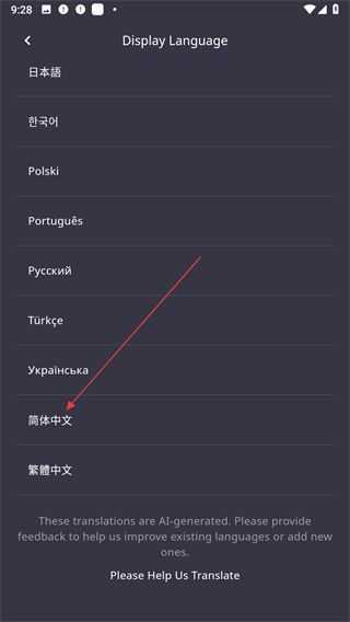 3、在語言設(shè)置界面,找到簡(jiǎn)體中文選項(xiàng),點(diǎn)擊簡(jiǎn)體中文選項(xiàng)進(jìn)行選擇,等待系統(tǒng)完成語言切換指令接收。