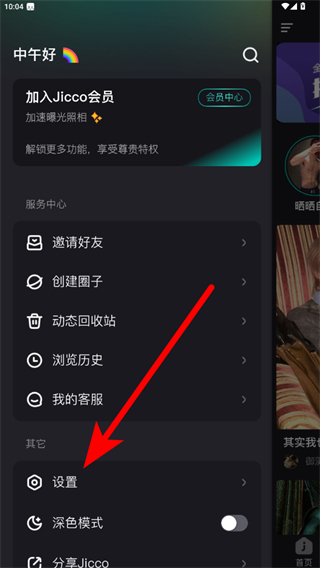 2、在彈出的側(cè)邊欄中,點(diǎn)擊設(shè)置選項(xiàng)。