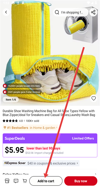 3、在進(jìn)入到商品購買詳情頁面后,可以點(diǎn)擊Add to cat按鈕,添加到購物車中。
