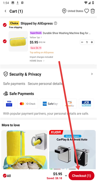 4、點(diǎn)擊購物車圖標(biāo),進(jìn)入到購物車頁面中,可以點(diǎn)擊下方Checkout按鈕進(jìn)行購買。