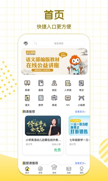 4、線下選課報(bào)班360度了解校區(qū)和老師,在線預(yù)約課程試聽(tīng),校區(qū)實(shí)地感受課堂效果;課程優(yōu)惠搶先知道,足不出戶輕松繳費(fèi)報(bào)班