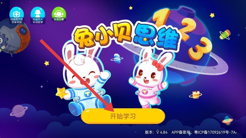 1、打開(kāi)兔小貝思維軟件,點(diǎn)擊主界面的開(kāi)始學(xué)習(xí)。