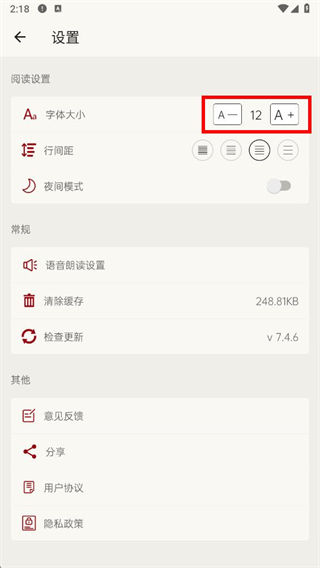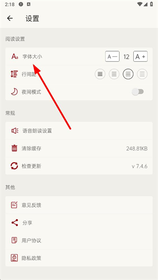 3、在設(shè)置界面里,找到字體大小的選項(xiàng)設(shè)置。
