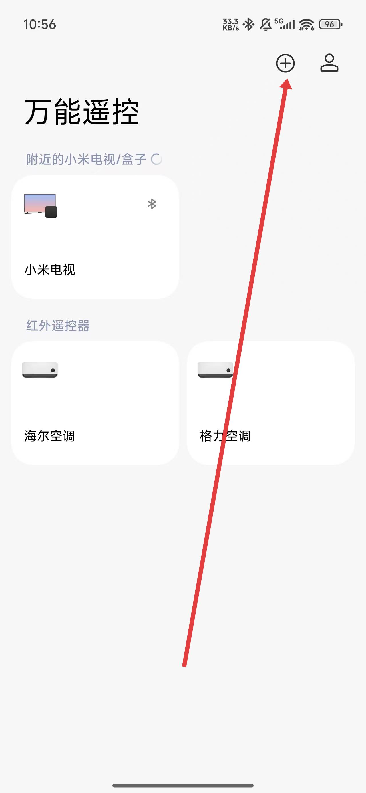 1、可以通過點擊首頁什么的加號按鈕,進行添加遙控設(shè)備。
