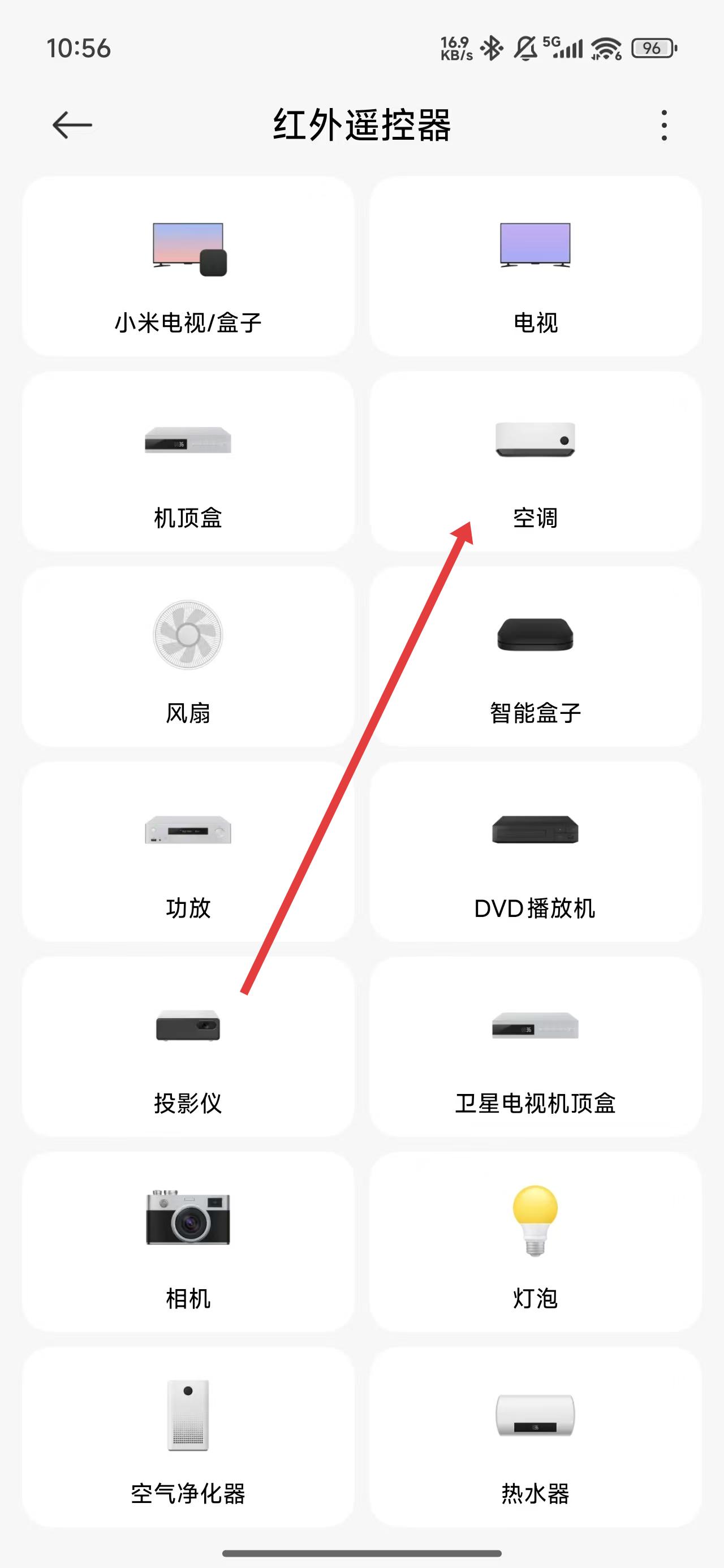 2、在進入設(shè)備添加頁面,可以點擊選擇空調(diào)進行添加相關(guān)遙控器。
