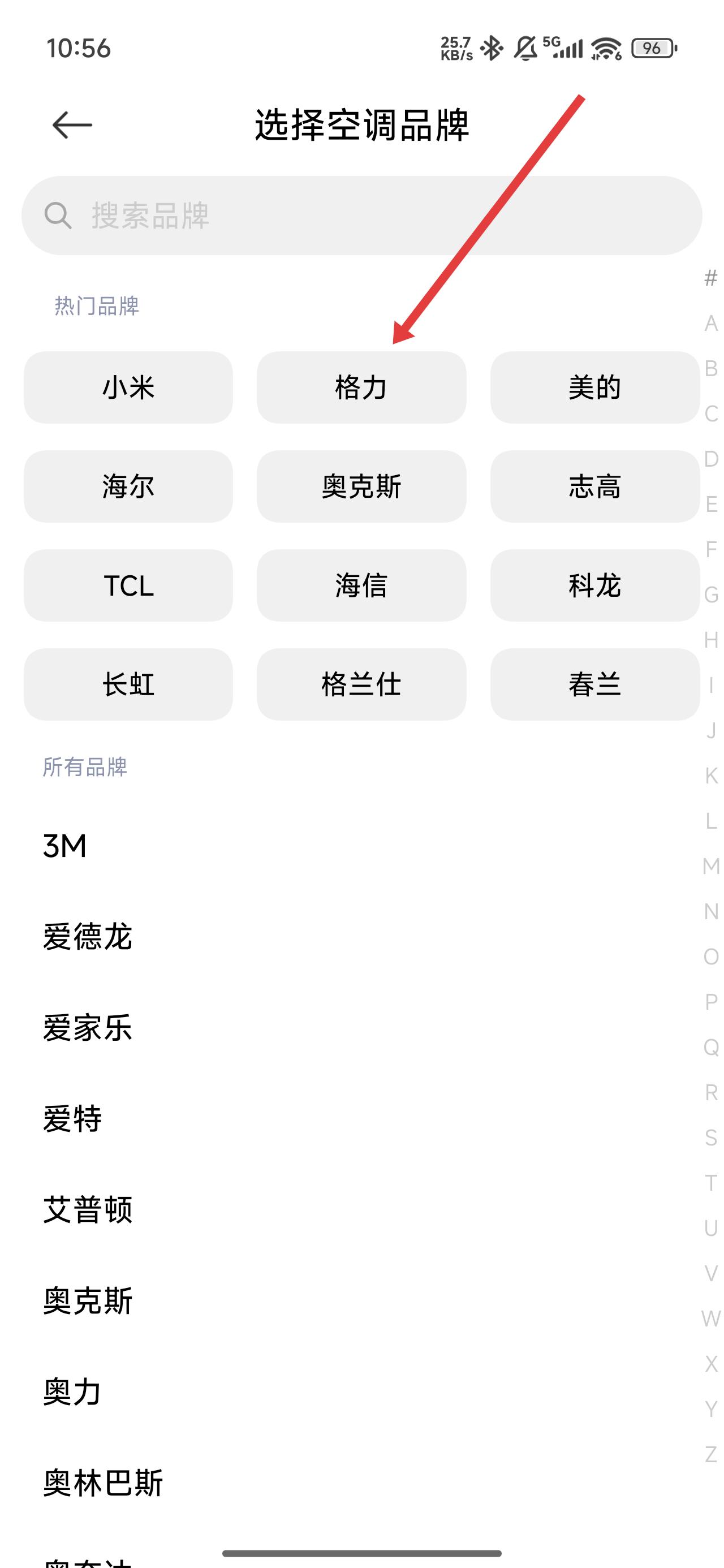 3、在進入到空調(diào)品牌頁面中,選擇點擊格力進行添加該款式遙控器。