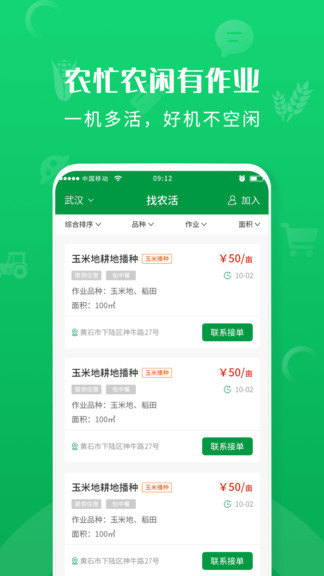 農(nóng)事幫是一款農(nóng)業(yè)app,軟件是信息化的農(nóng)業(yè)幫手平臺(tái),這里可以在線尋找各種農(nóng)用的機(jī)械,收割機(jī)、播種機(jī)等等,不論是新的還是二手的在這里全都能找到。機(jī)器壞了的話還能在這里找到維修師傅,快速上門幫忙維修。還能尋找各種別人發(fā)布的農(nóng)活,查看條件,還能進(jìn)行交談,方便好用。
