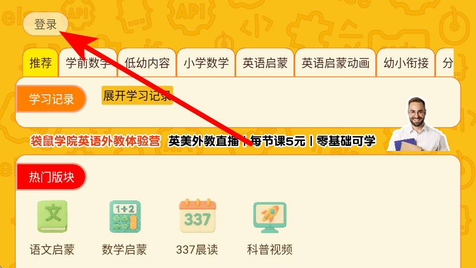 1、在okmath全科啟蒙首頁(yè),點(diǎn)擊登錄,彈出登錄選項(xiàng)窗口。