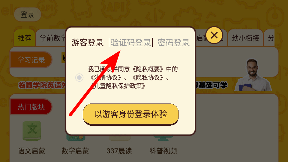 2、在登錄選項(xiàng)窗口,點(diǎn)擊驗(yàn)證碼登錄,進(jìn)入驗(yàn)證碼登錄頁(yè)面。
