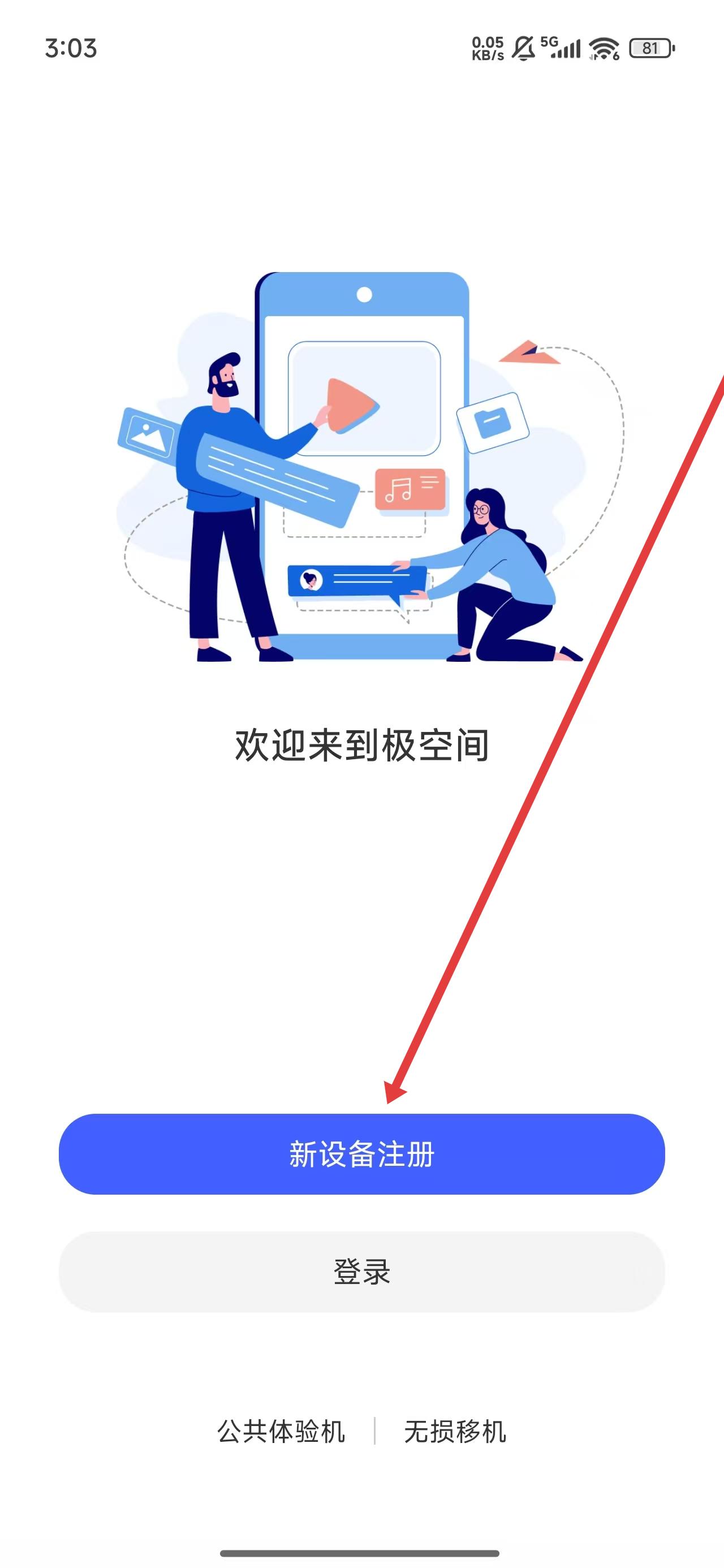 1、在進(jìn)入到app后,如果沒有賬號可以點(diǎn)擊新設(shè)備注冊按鈕,進(jìn)行注冊。