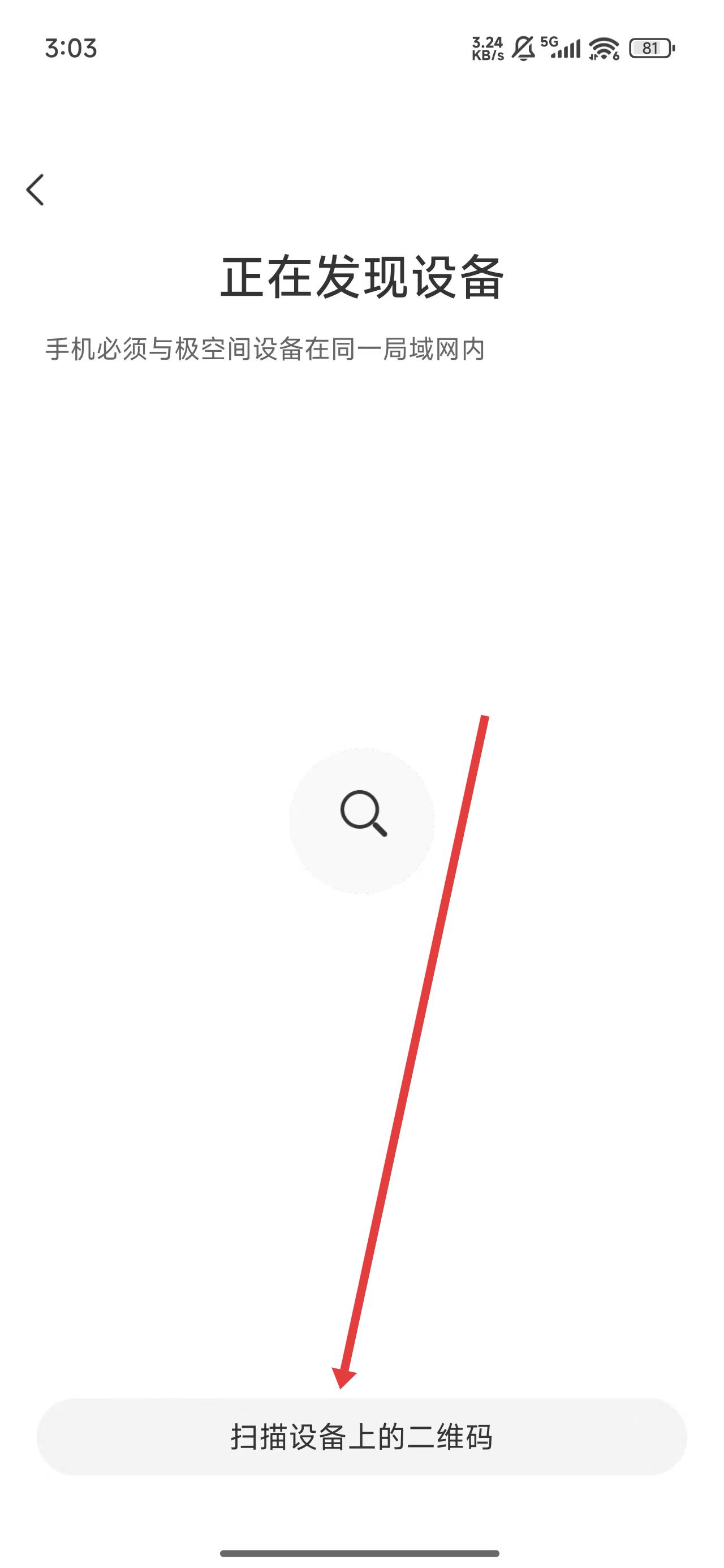 3、可以通過點(diǎn)擊掃描設(shè)備上的二維碼按鈕,進(jìn)行添加設(shè)備。
