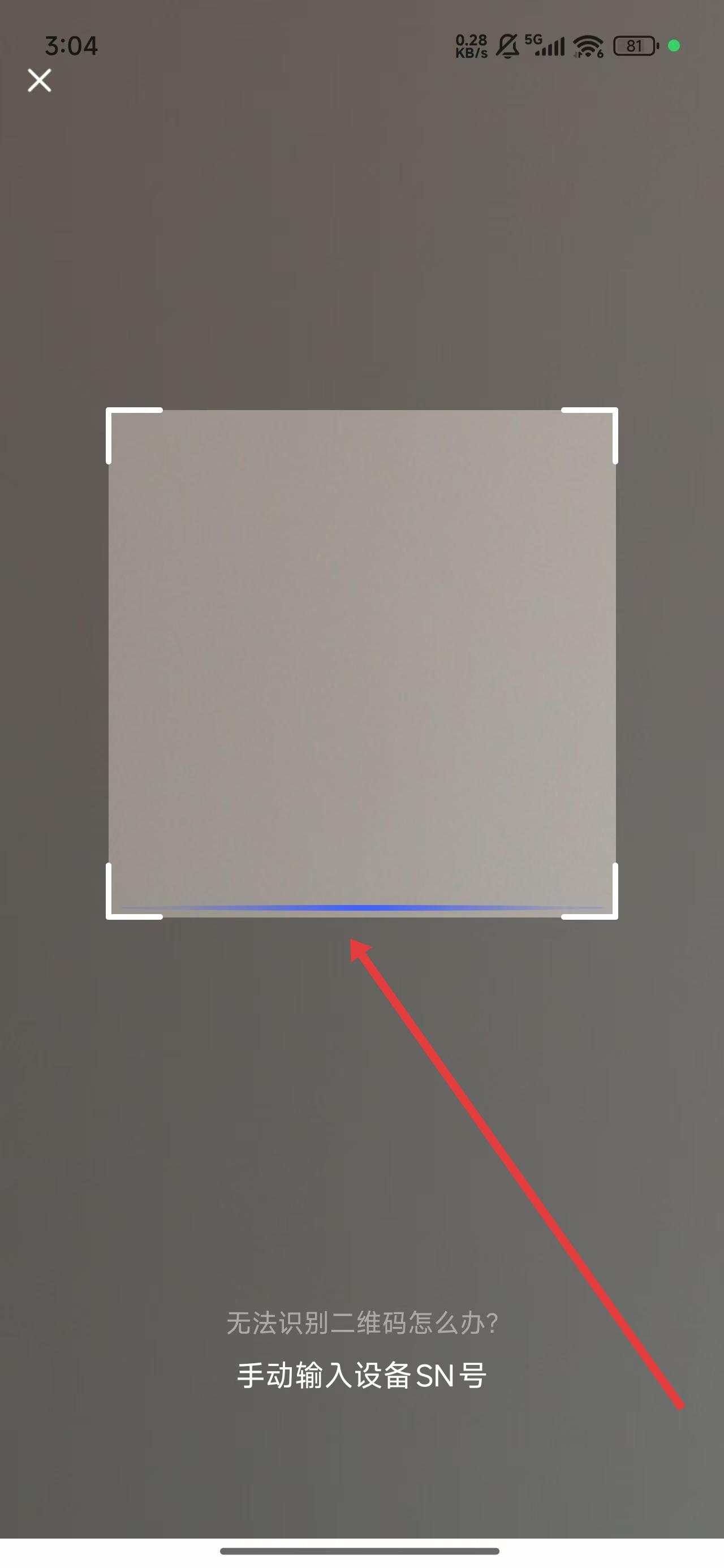 4、將設(shè)備上的二維碼對準(zhǔn)掃描框,識別二維碼后即可完成添加注冊操作。