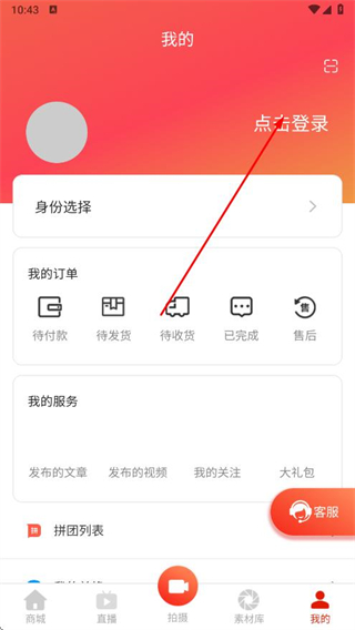 2、在我的頁面中,點擊點擊登錄按鈕。