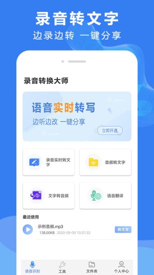 這是一款支持“錄音轉(zhuǎn)文字、專業(yè)錄音、在線翻譯、音頻剪切、文字合成配音“等多功能于一體的強大軟件!支持邊說變轉(zhuǎn),速度快,準確率高。人工智能語音識別引擎,支持實時轉(zhuǎn)寫,MP3,MP4,音頻,視頻格式轉(zhuǎn)寫。