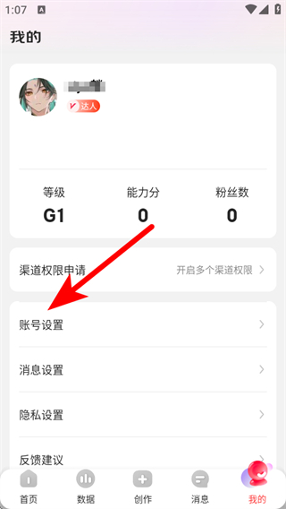 1、打開京東內(nèi)容助手APP,進(jìn)入我的頁(yè)面,點(diǎn)擊賬號(hào)設(shè)置。