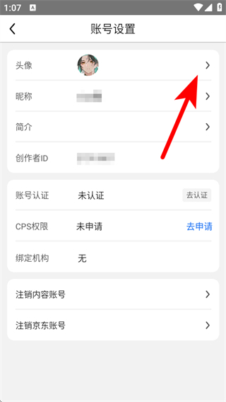 2、在賬號(hào)設(shè)置的頁(yè)面,我們需要點(diǎn)擊頭像的選項(xiàng)。