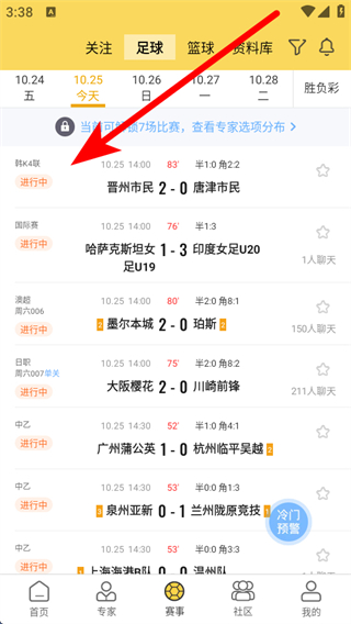 2、在賽事板塊頁(yè)面,選擇一場(chǎng)目標(biāo)比賽,點(diǎn)擊進(jìn)入比賽詳情界面。