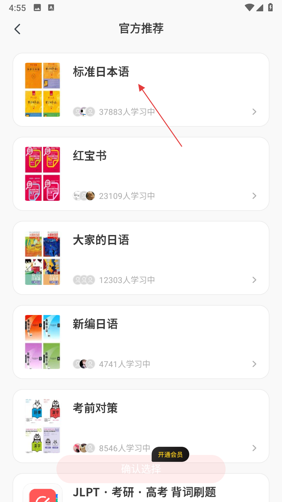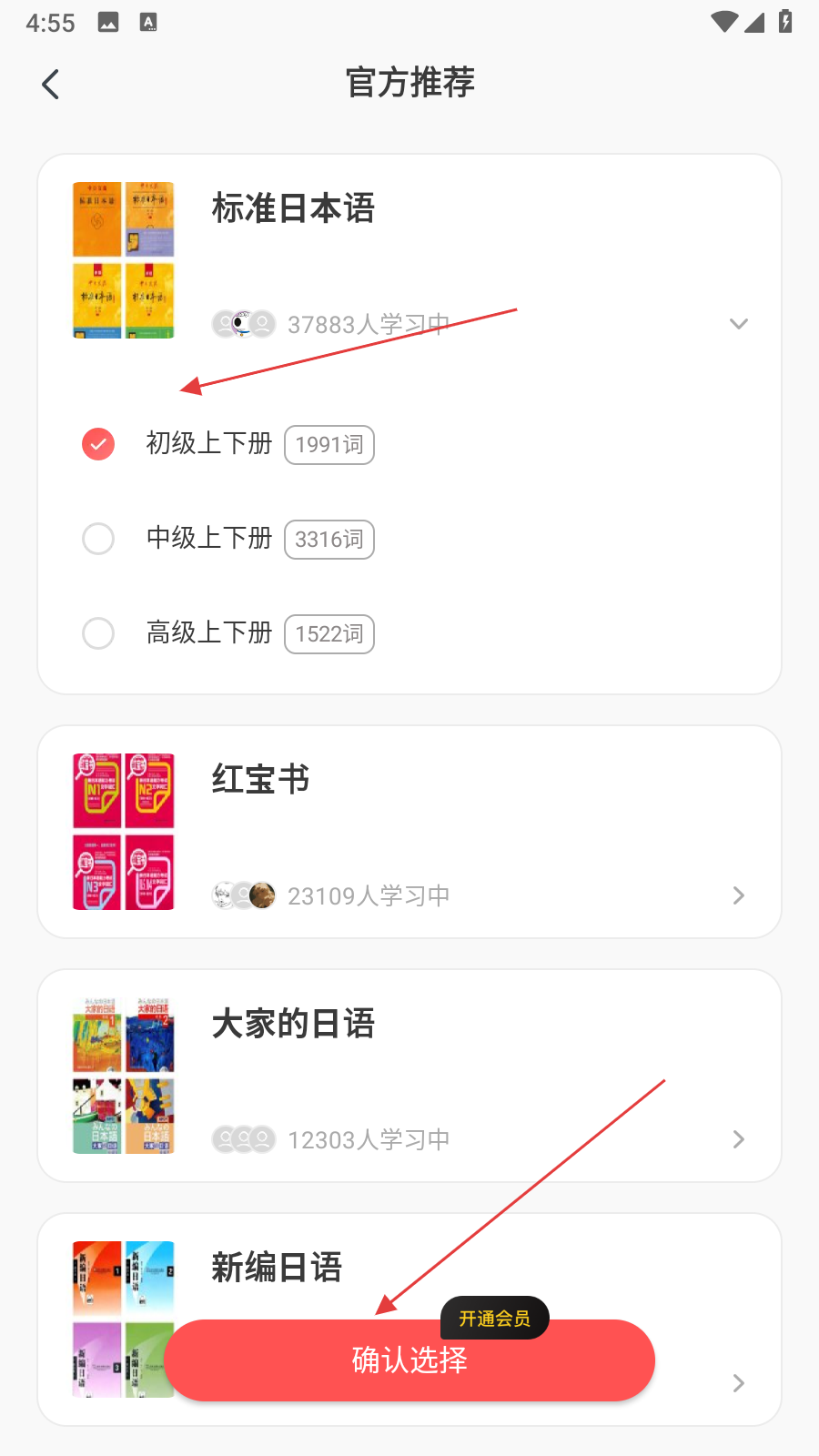 2、在詞書列表中選擇想要學習的詞書,點擊展開后選擇對應的級別。