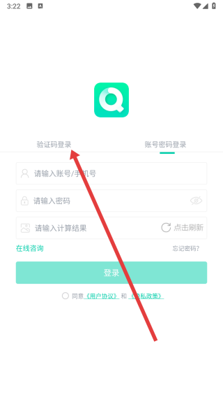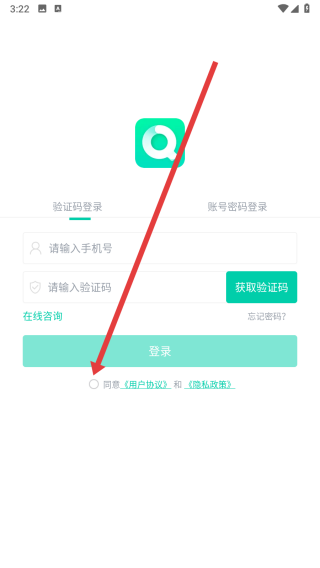 2、在切換到驗(yàn)證碼登錄界面,在登錄前需先點(diǎn)擊勾選同意按鈕。