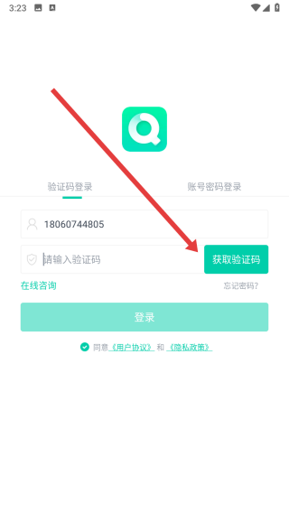 4、在填寫好手機(jī)號(hào)后,通過點(diǎn)擊獲取驗(yàn)證碼按鈕,等待一段時(shí)間后輸入驗(yàn)證碼即可完成登錄。