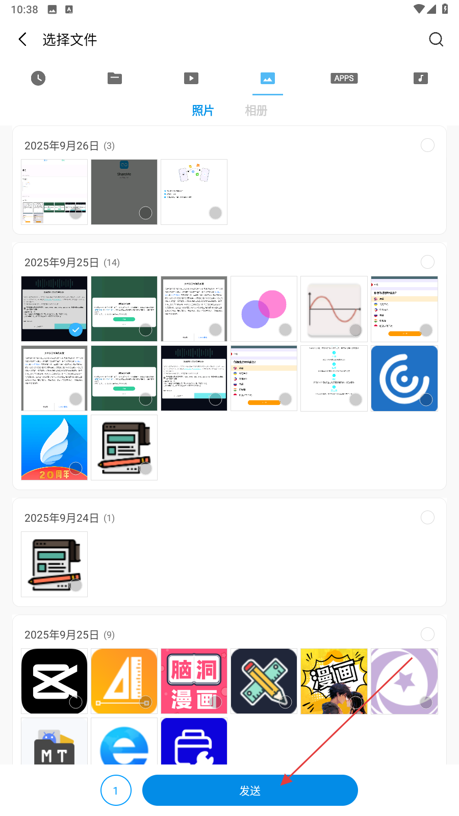 3、在選擇文件的界面內(nèi),選擇并點(diǎn)擊發(fā)送的按鈕。