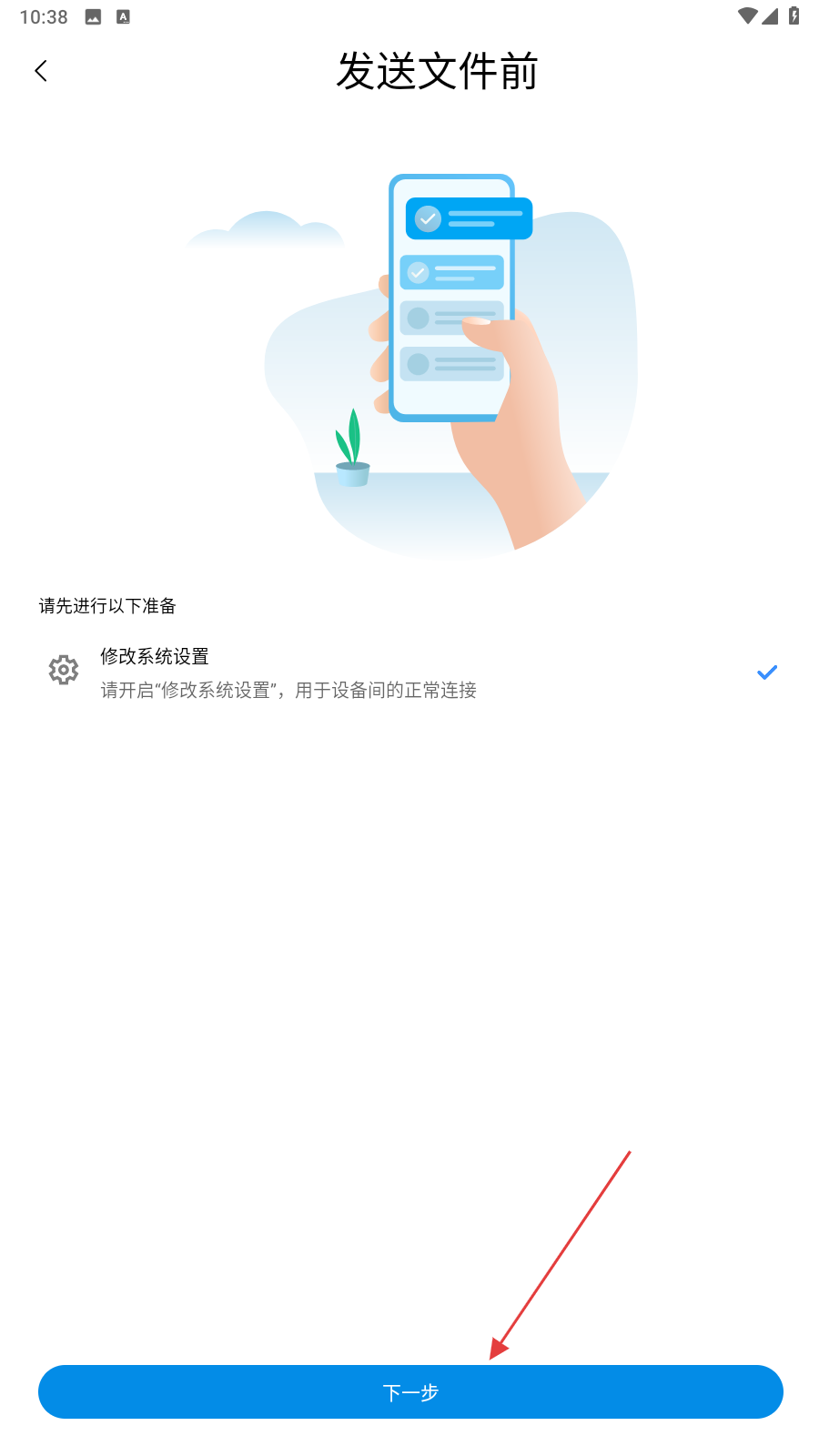 4、發(fā)送前,打開修改系統(tǒng)設(shè)置后,再點(diǎn)擊下一步即可開始發(fā)送。