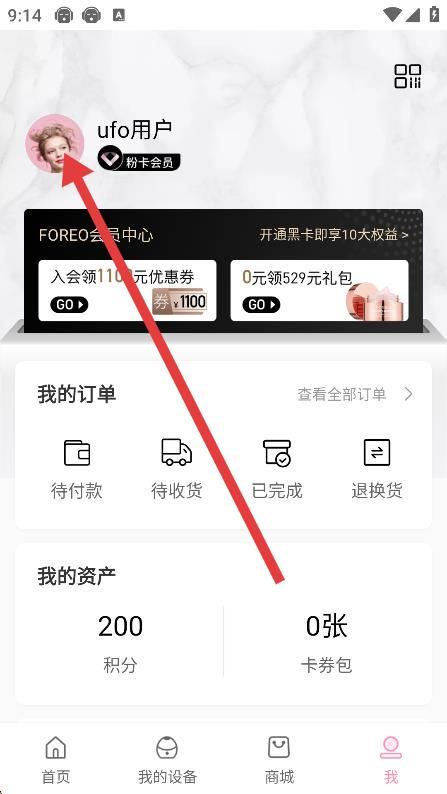2、在我的頁面,點擊頭像進入個人中心頁面。